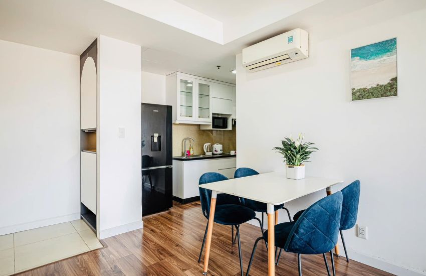 Thời gian hợp đồng tối thiểu là 6 tháng đối với căn hộ dịch vụ và 12 tháng đối với căn hộ/chung cư.